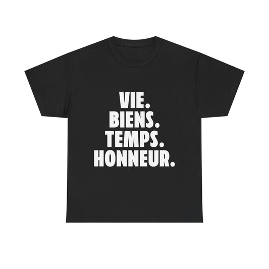 Inspirational T-Shirt – Vie. Biens. Temps. Honneur.