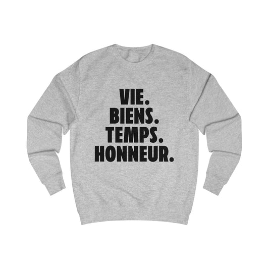 Inspirational Sweatshirt – Vie. Biens. Temps. Honneur.