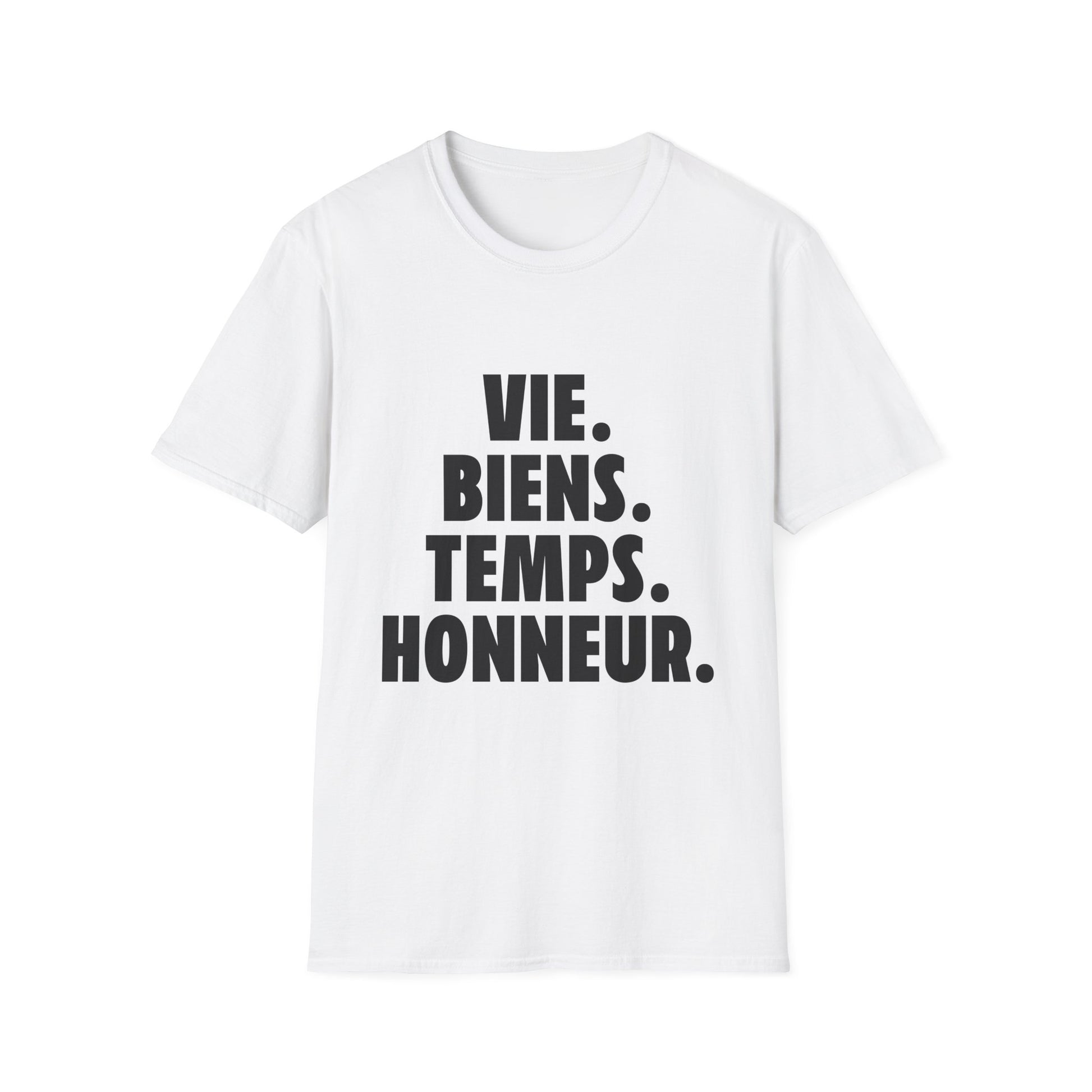 Inspirational T-Shirt – Vie. Biens. Temps. Honneur.
